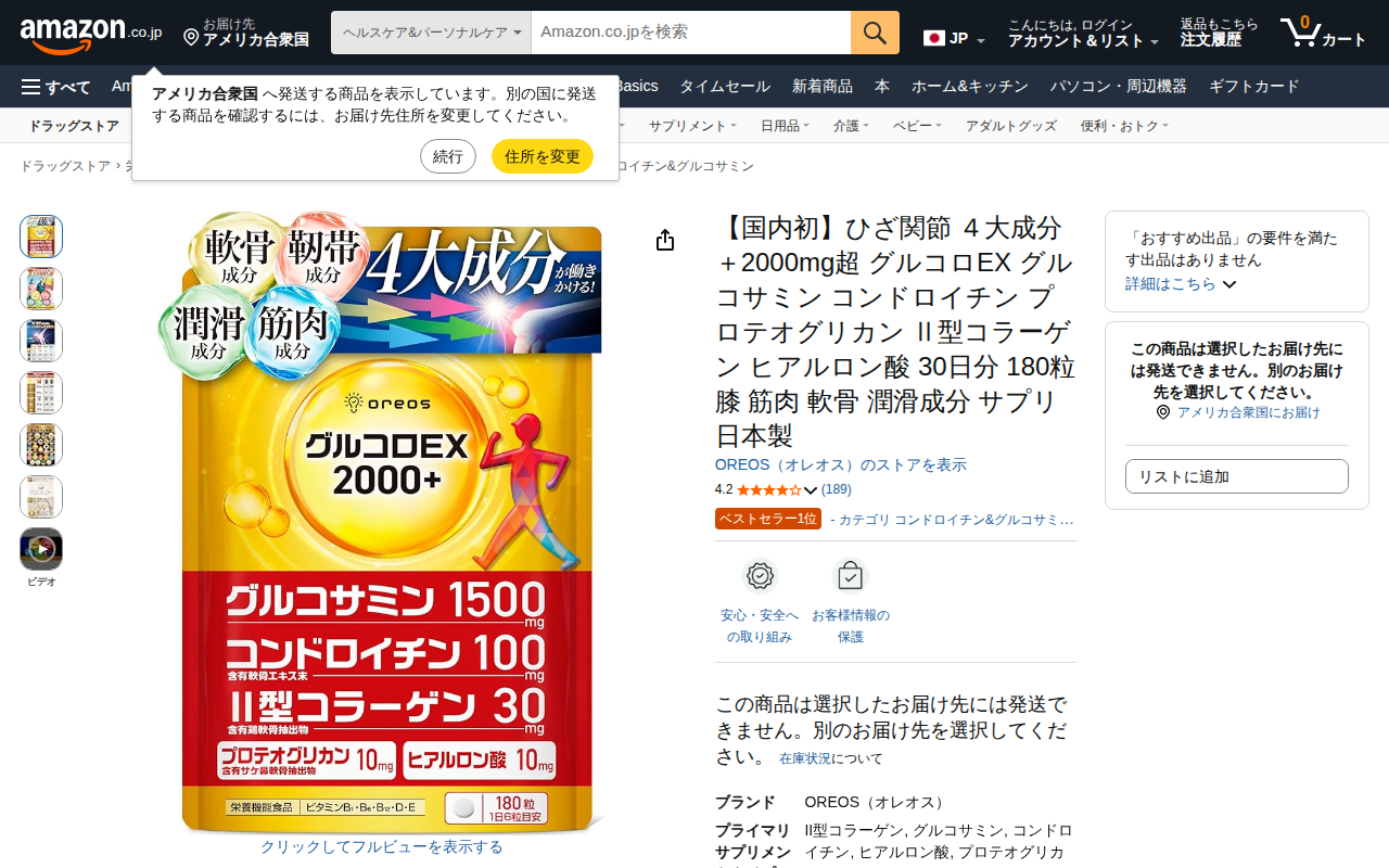 Amazon | 【国内初】ひざ関節 4大成分+2000mg超 グルコロEX グルコサミン コンドロイチン プロテオグリカン Ⅱ型コラーゲン ヒアルロン酸 30日分 180粒 膝 筋肉 軟骨 潤滑成分 サプリ 日本製 | OREOS(オレオス) | コンドロイチン&グルコサミン