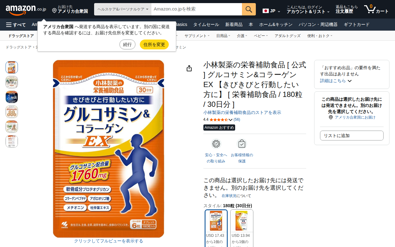 Amazon.co.jp: 小林製薬の栄養補助食品 [ 公式 ] グルコサミン&コラーゲンEX 【きびきびと行動したい方に】 [ 栄養補助食品 / 180粒 / 30日分 ] : ドラッグストア