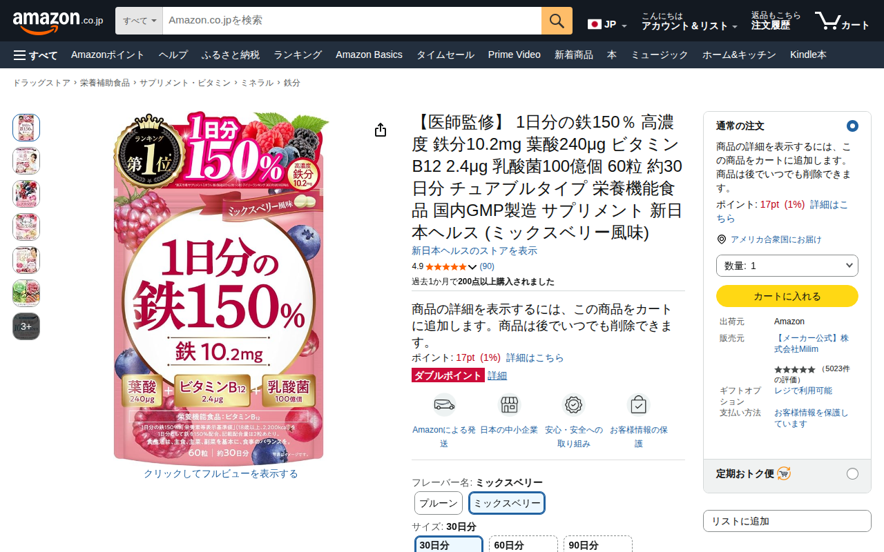 Amazon | 【医師監修】 1日分の鉄150% 高濃度 鉄分10.2mg 葉酸240μg ビタミンB12 2.4μg 乳酸菌100億個 60粒 約30日分 チュアブルタイプ 栄養機能食品 国内GMP製造 サプリメント 新日本ヘルス (ミックスベリー風味) | 新日本ヘルス | 鉄分