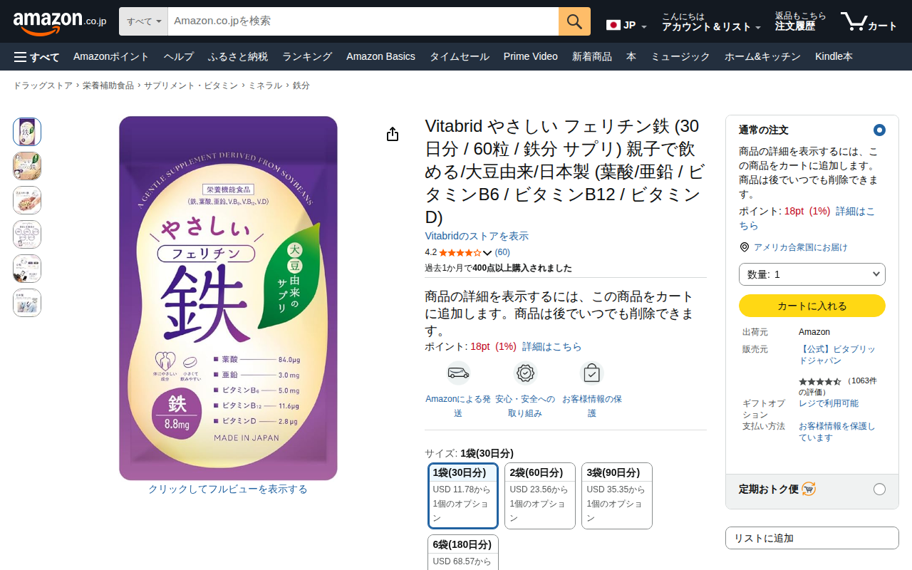 Amazon | Vitabrid やさしい フェリチン鉄 (30日分 / 60粒 / 鉄分 サプリ) 親子で飲める/大豆由来/日本製 (葉酸/亜鉛 / ビタミンB6 / ビタミンB12 / ビタミンD) | Vitabrid | 鉄分