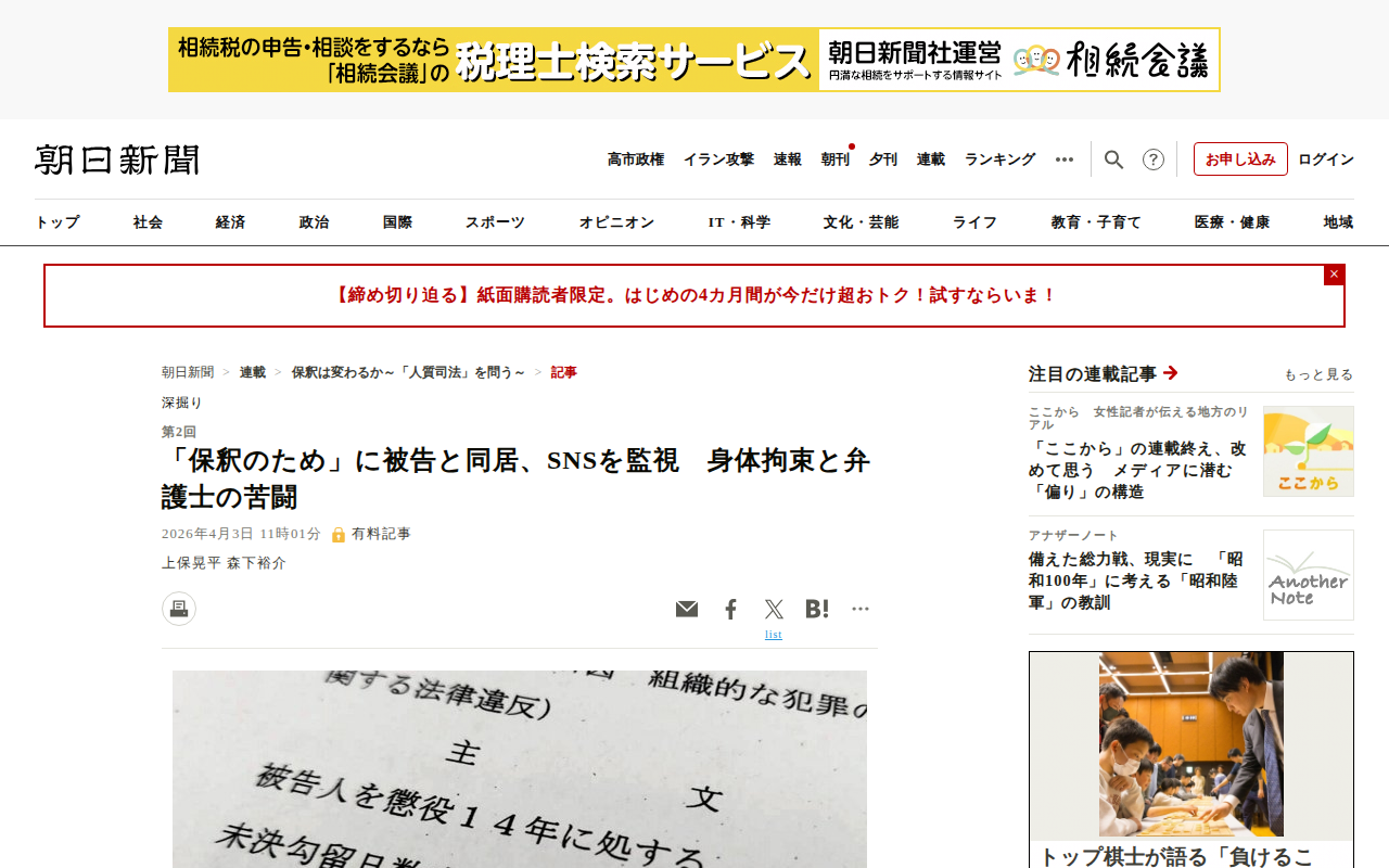 「保釈のため」に被告と同居、SNSを監視 身体拘束と弁護士の苦闘:朝日新聞