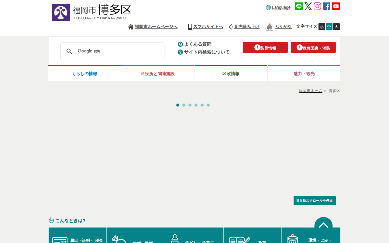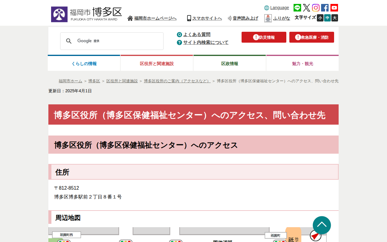 福岡市 博多区役所(博多区保健福祉センター)へのアクセス、問い合わせ先