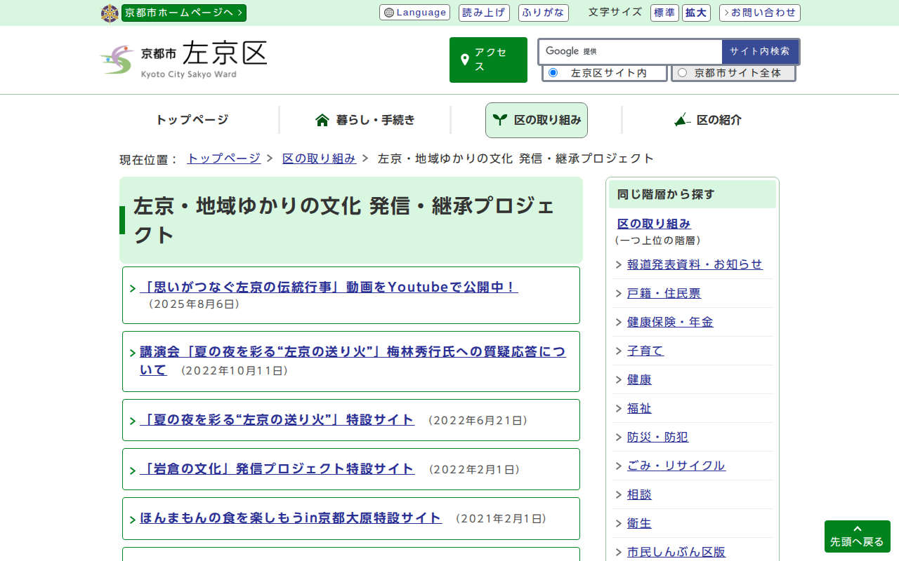 京都市左京区役所:左京・地域ゆかりの文化 発信・継承プロジェクト