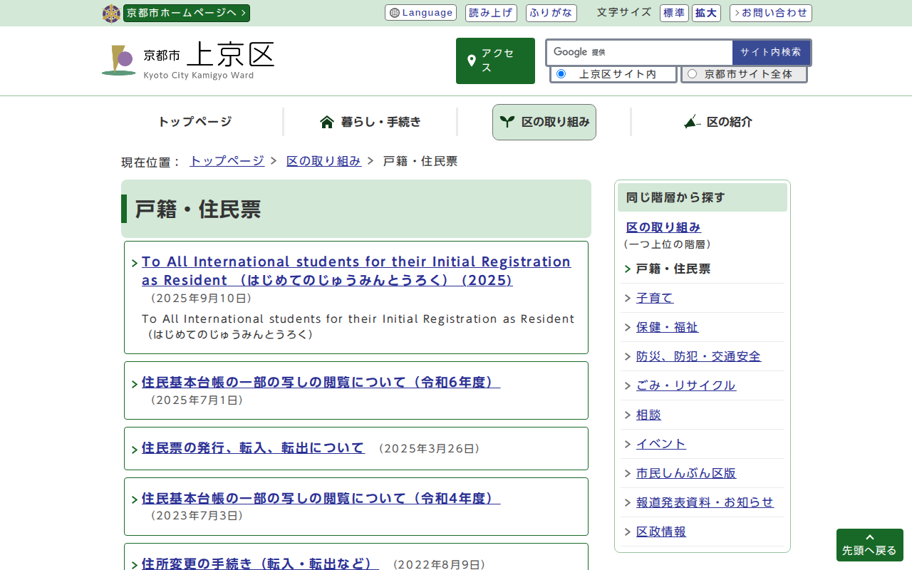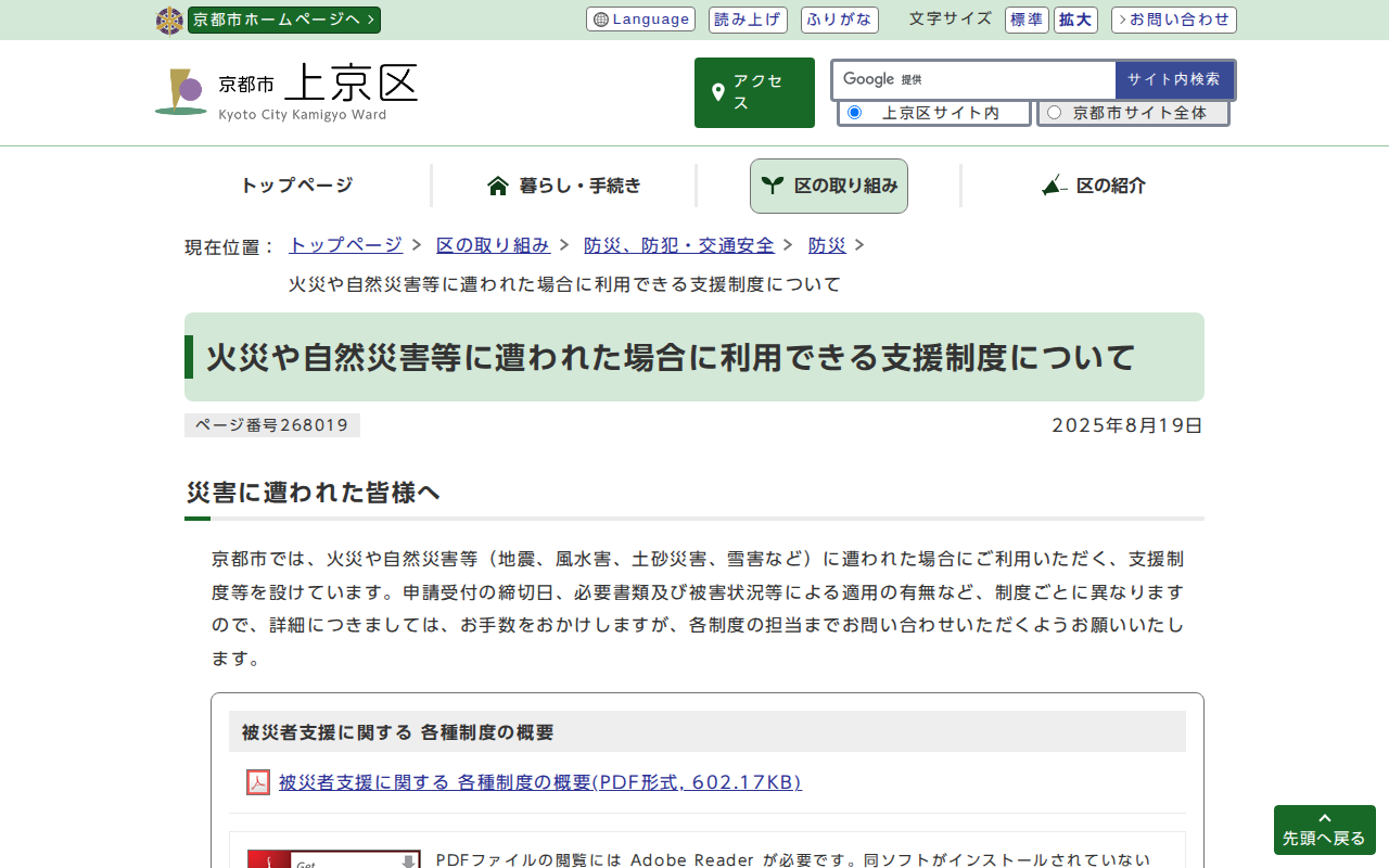京都市上京区役所:火災や自然災害等に遭われた場合に利用できる支援制度について