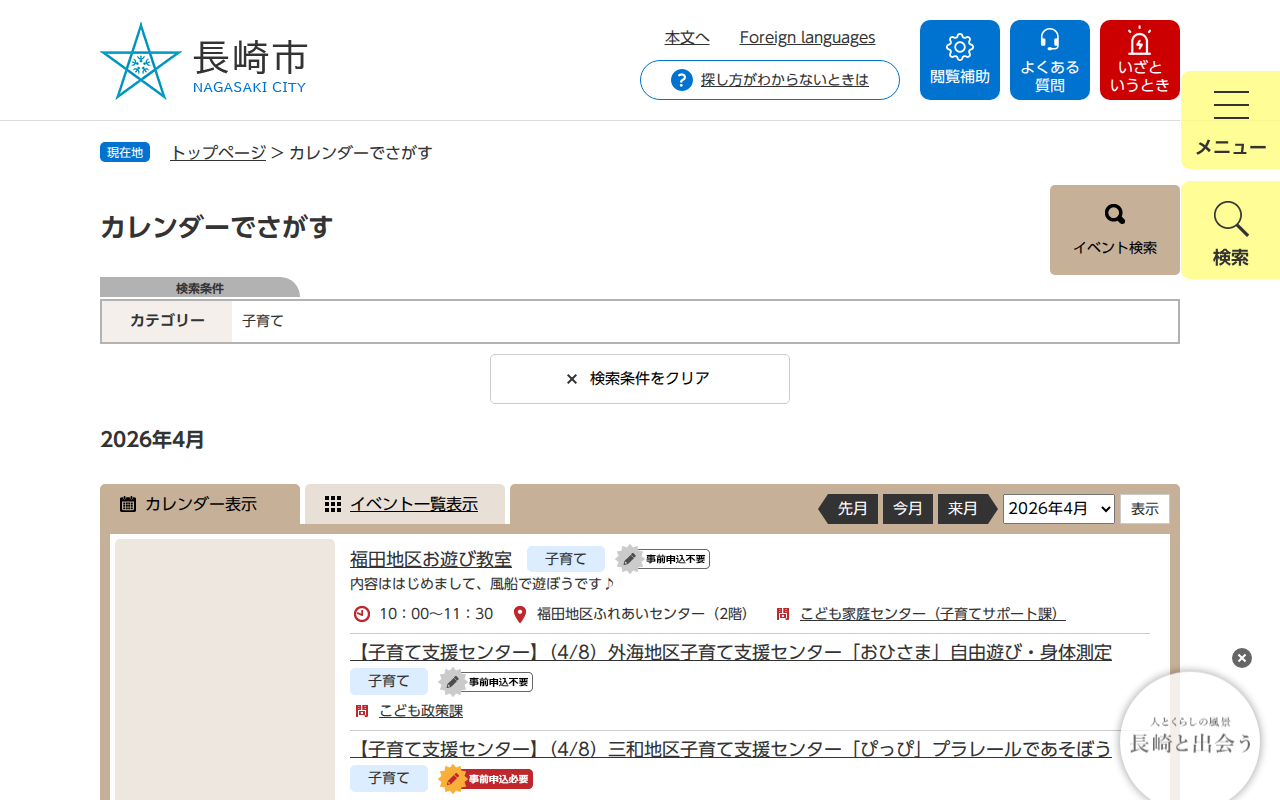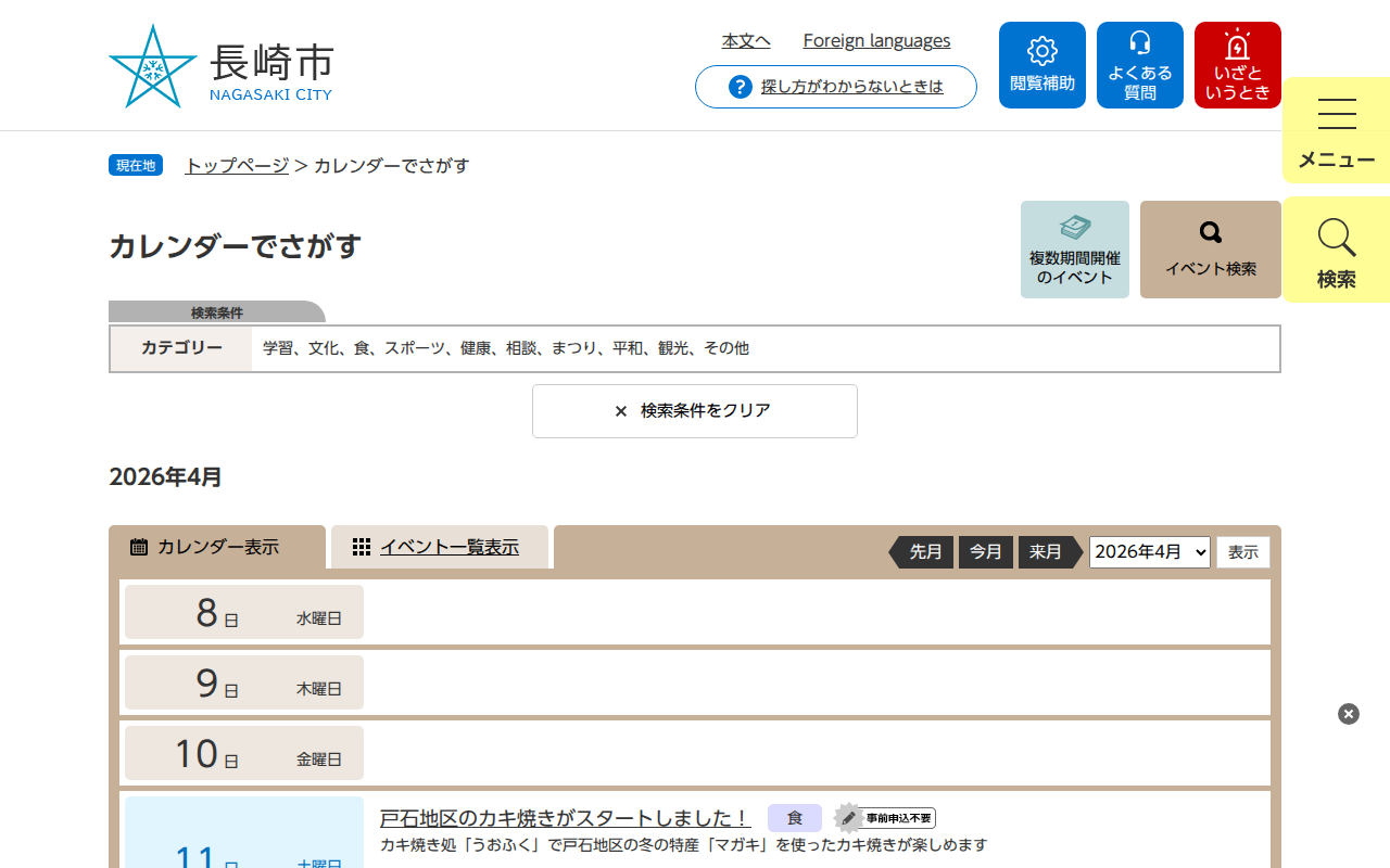 カレンダーでさがす - 長崎市ウェブサイト