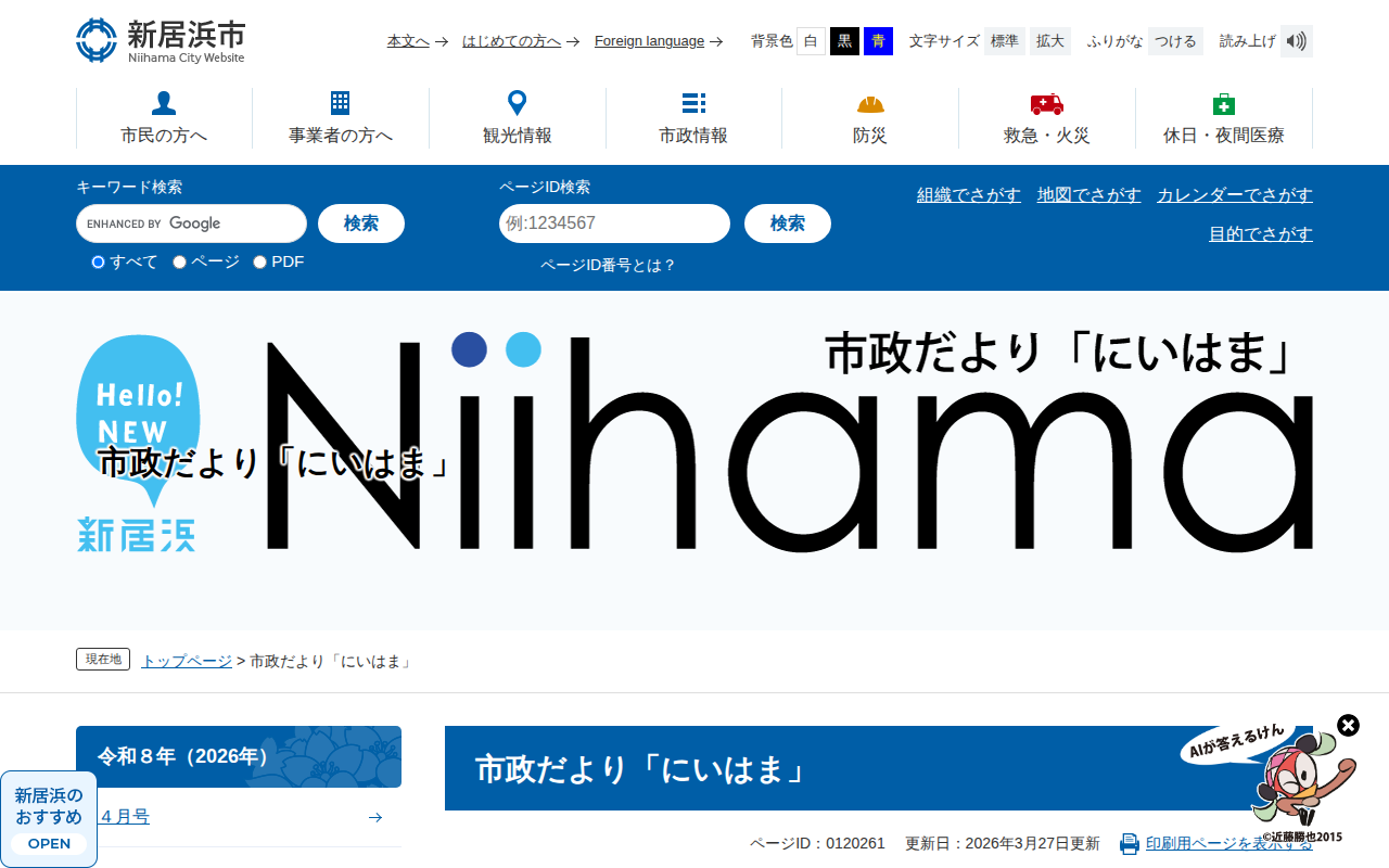 市政だより「にいはま」 - 愛媛県新居浜市ホームページ|四国屈指の臨海工業都市