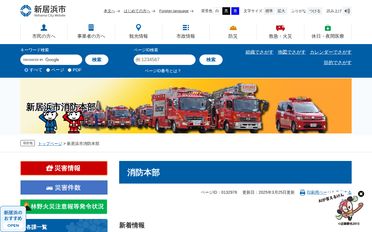 消防本部 - 愛媛県新居浜市ホームページ|四国屈指の臨海工業都市
