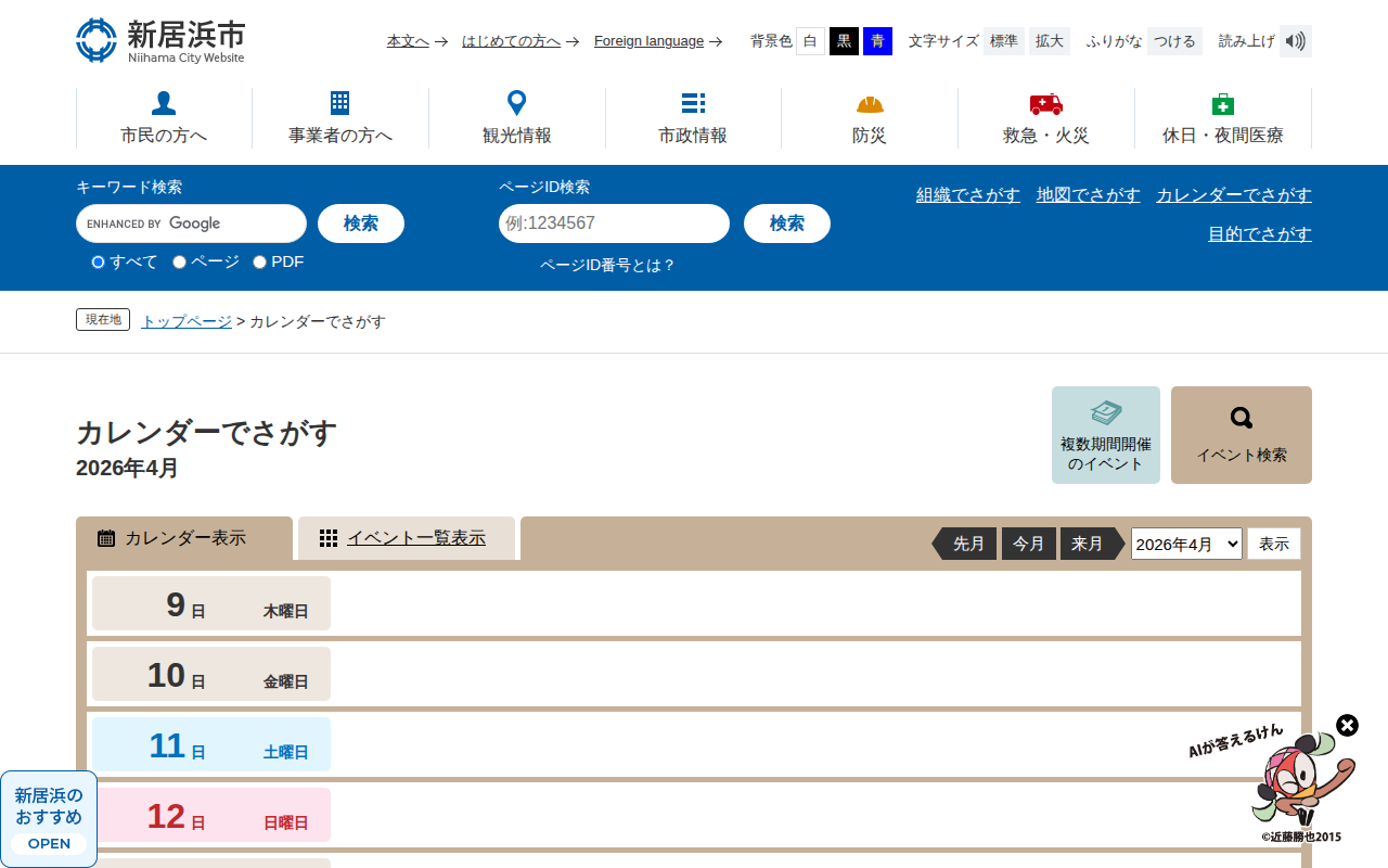 カレンダーでさがす - 愛媛県新居浜市ホームページ|四国屈指の臨海工業都市