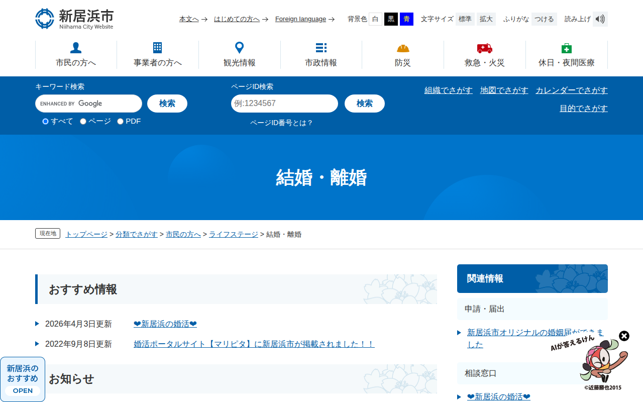 結婚・離婚 - 愛媛県新居浜市ホームページ|四国屈指の臨海工業都市
