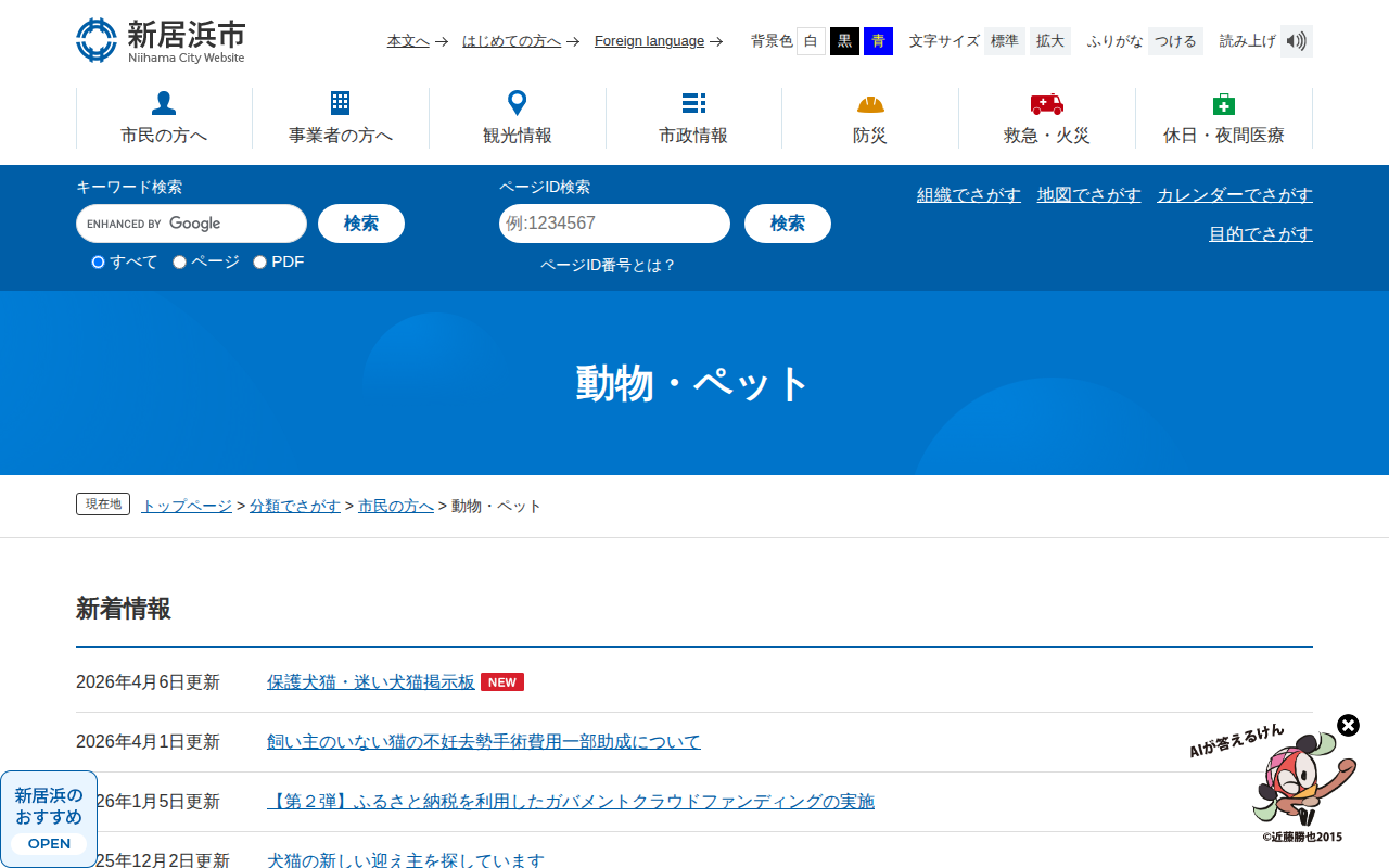 動物・ペット - 愛媛県新居浜市ホームページ|四国屈指の臨海工業都市