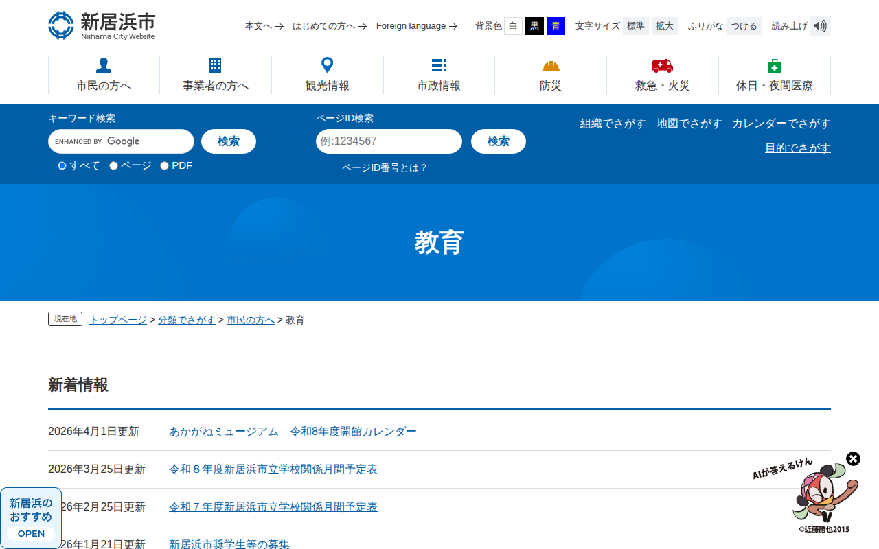 教育 - 愛媛県新居浜市ホームページ|四国屈指の臨海工業都市