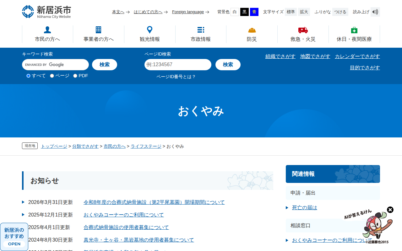 おくやみ - 愛媛県新居浜市ホームページ|四国屈指の臨海工業都市