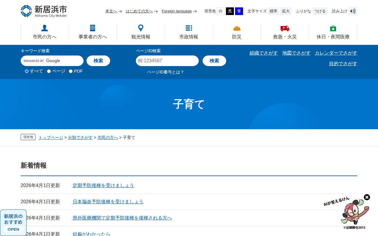 子育て - 愛媛県新居浜市ホームページ|四国屈指の臨海工業都市