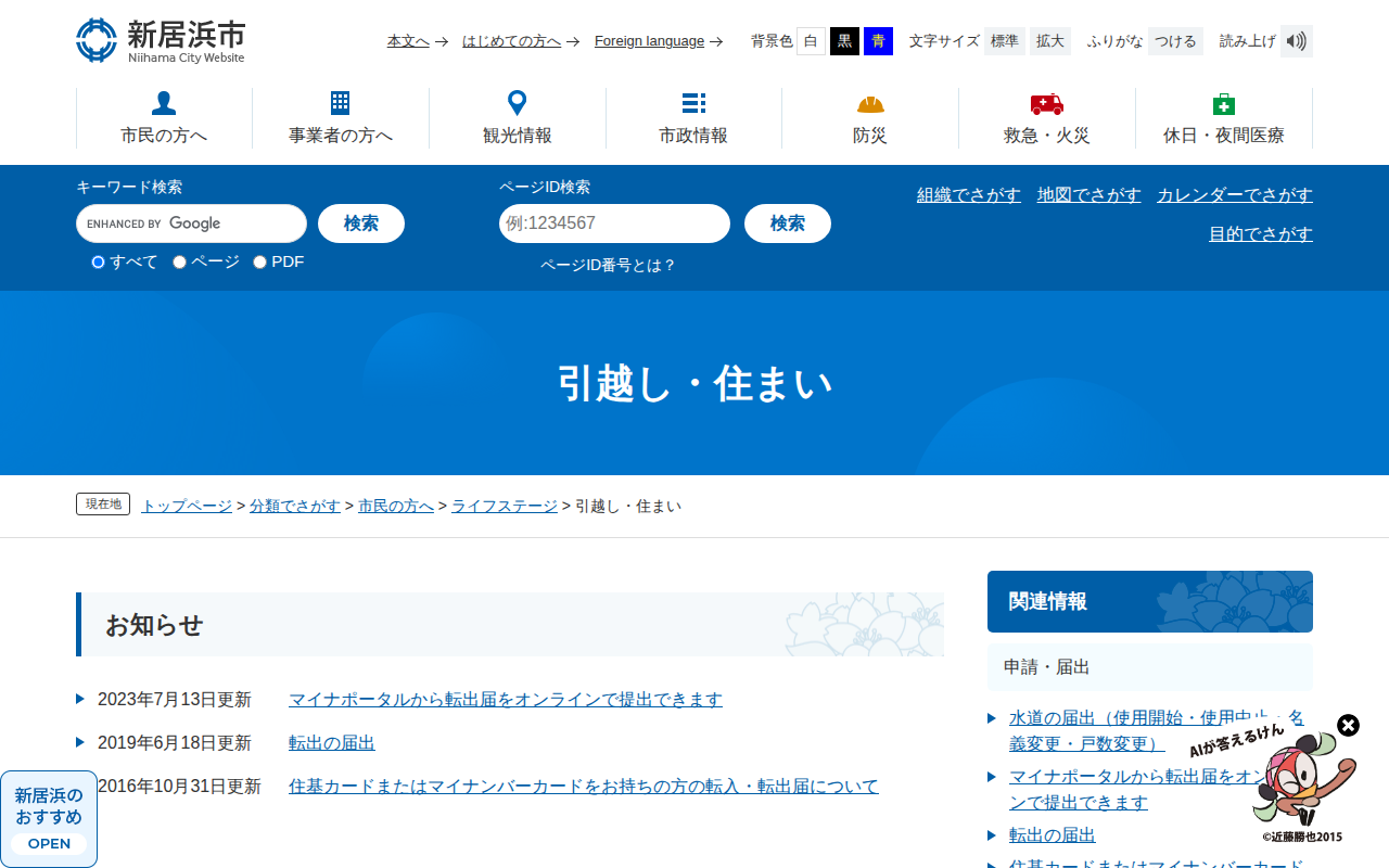 引越し・住まい - 愛媛県新居浜市ホームページ|四国屈指の臨海工業都市