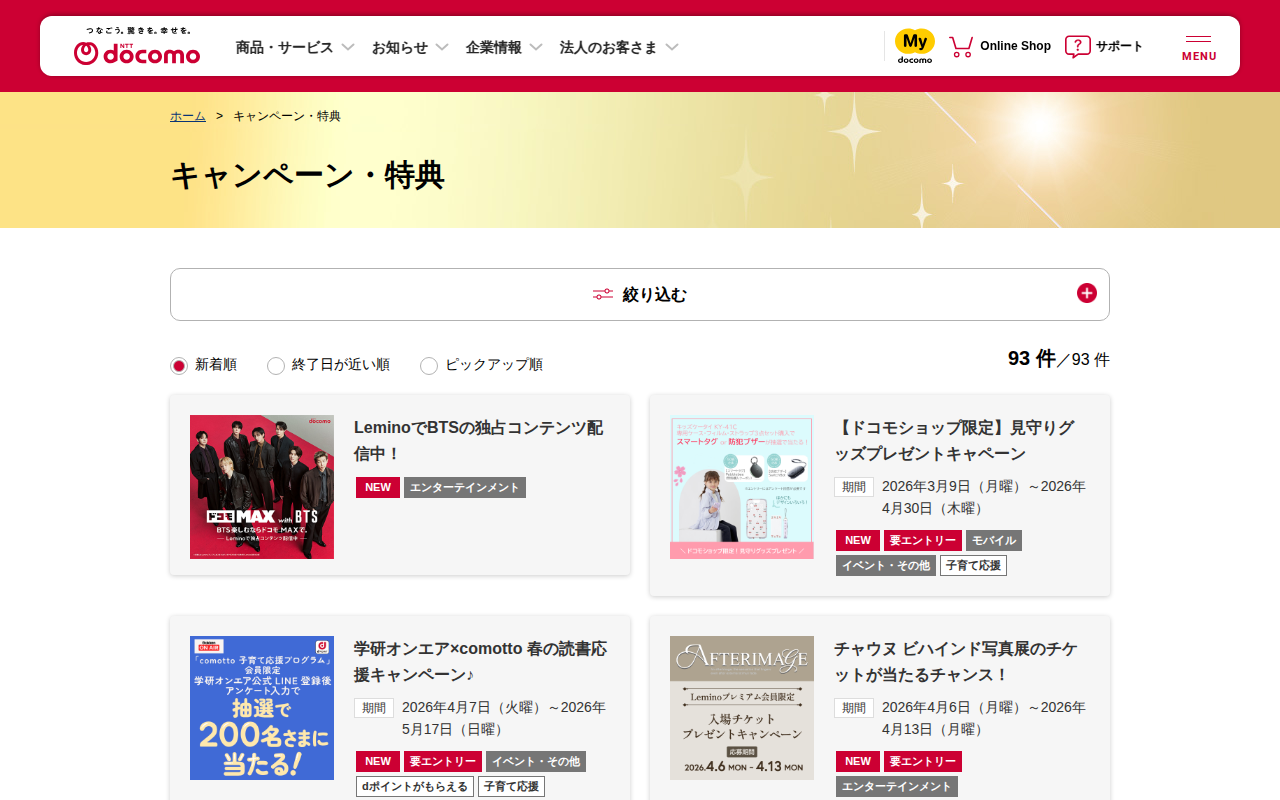 キャンペーン・特典 | NTTドコモ