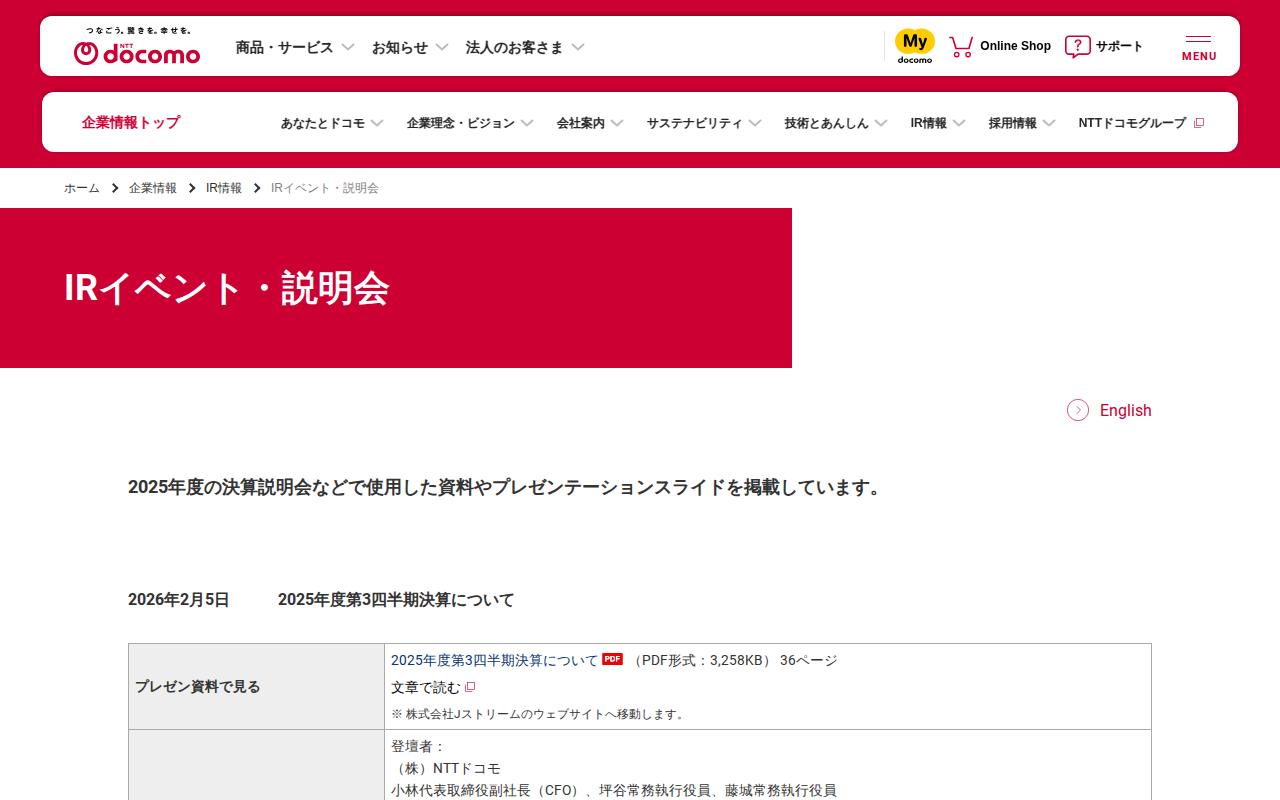 IRイベント・説明会 | 企業情報 | NTTドコモ