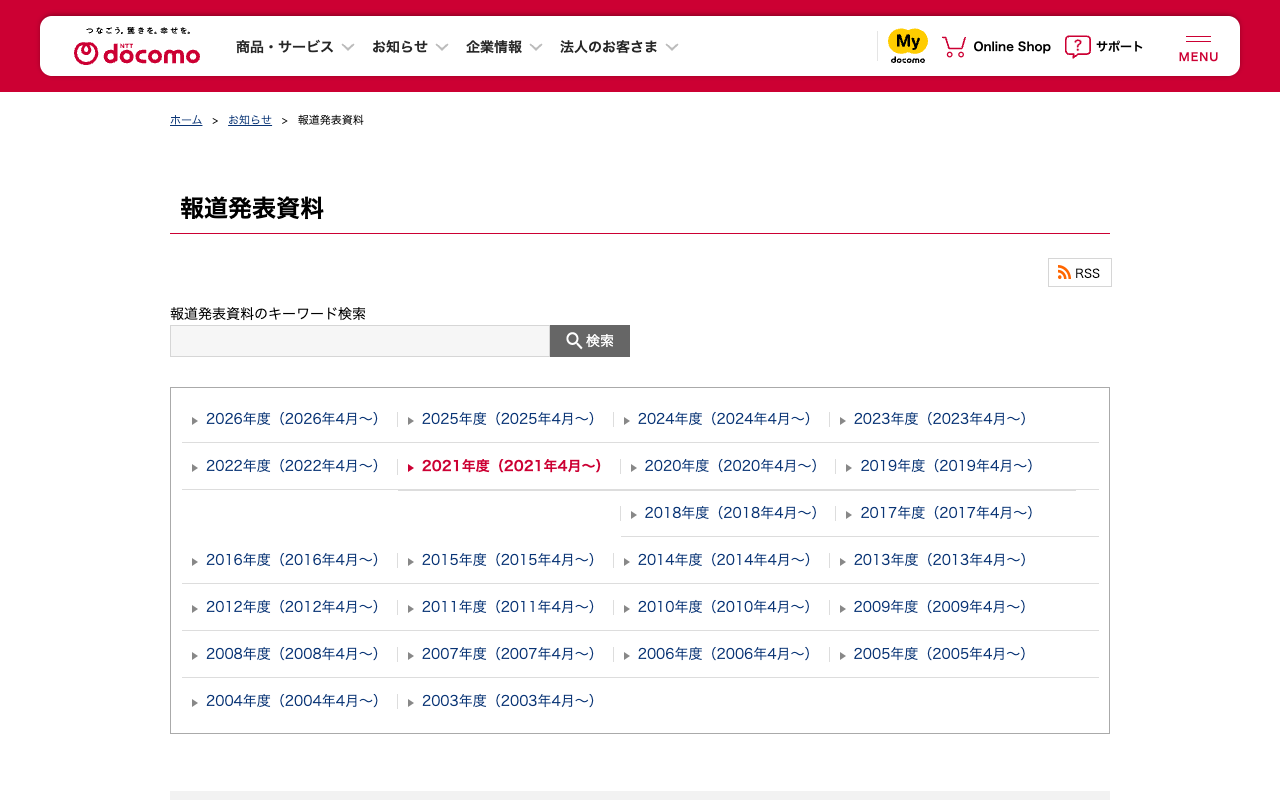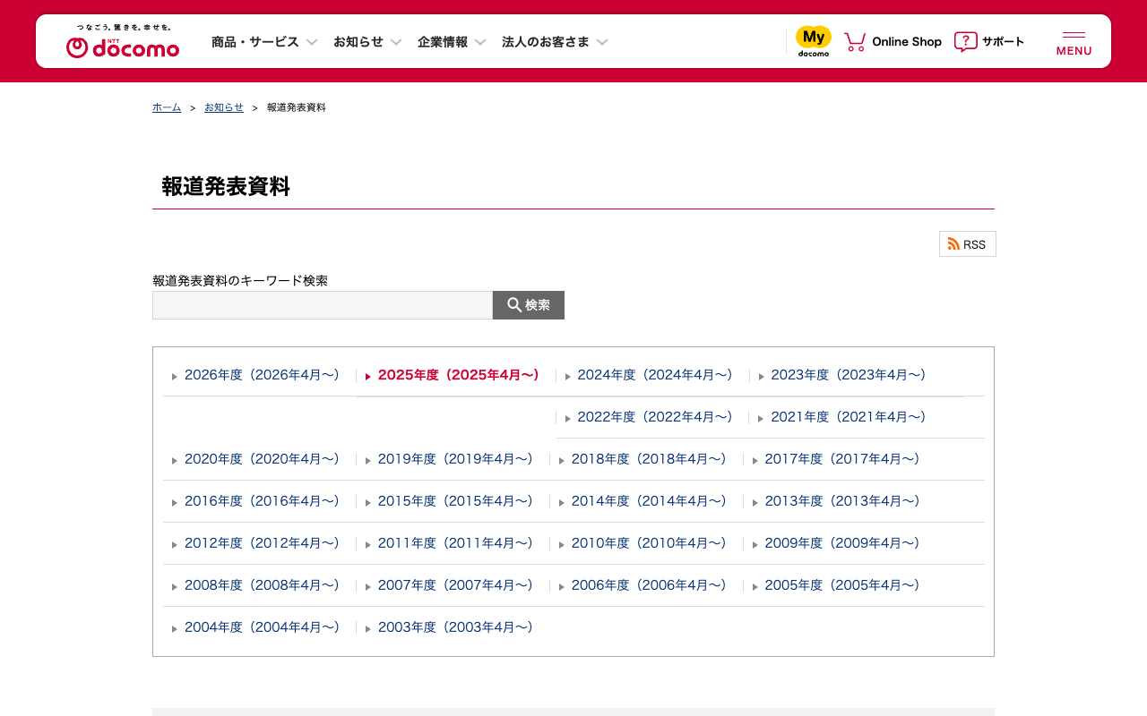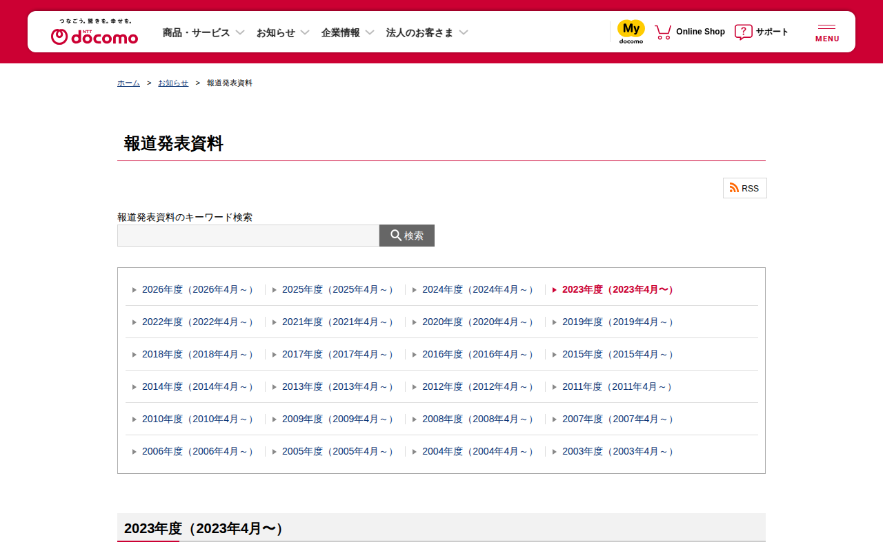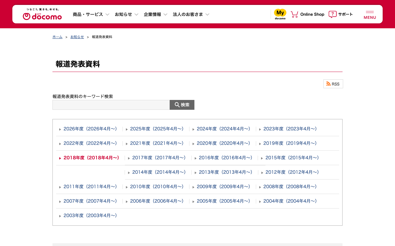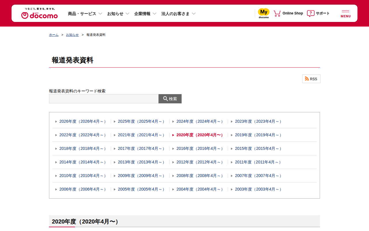 報道発表資料 : 過去(年度) | お知らせ | NTTドコモ