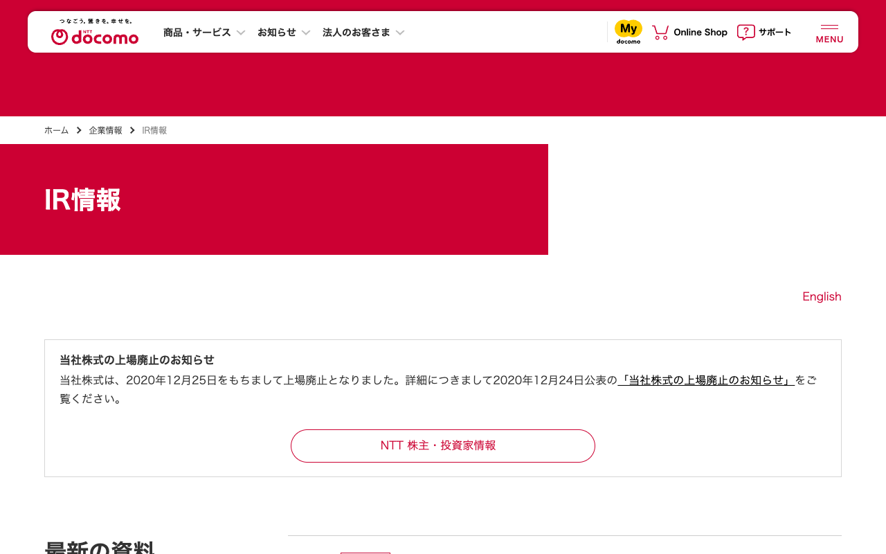 IR情報 | 企業情報 | NTTドコモ