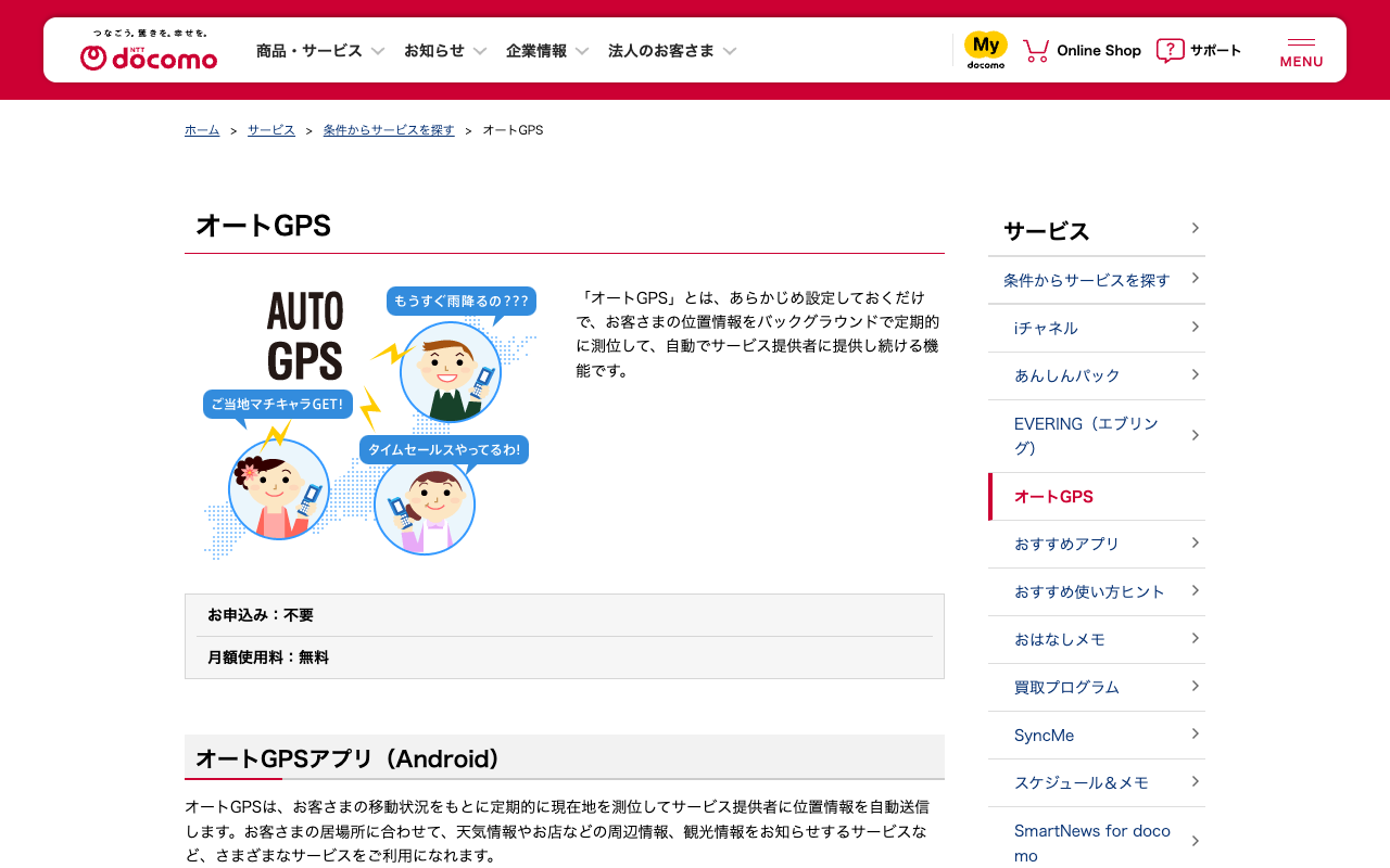 オートGPS | サービス | NTTドコモ