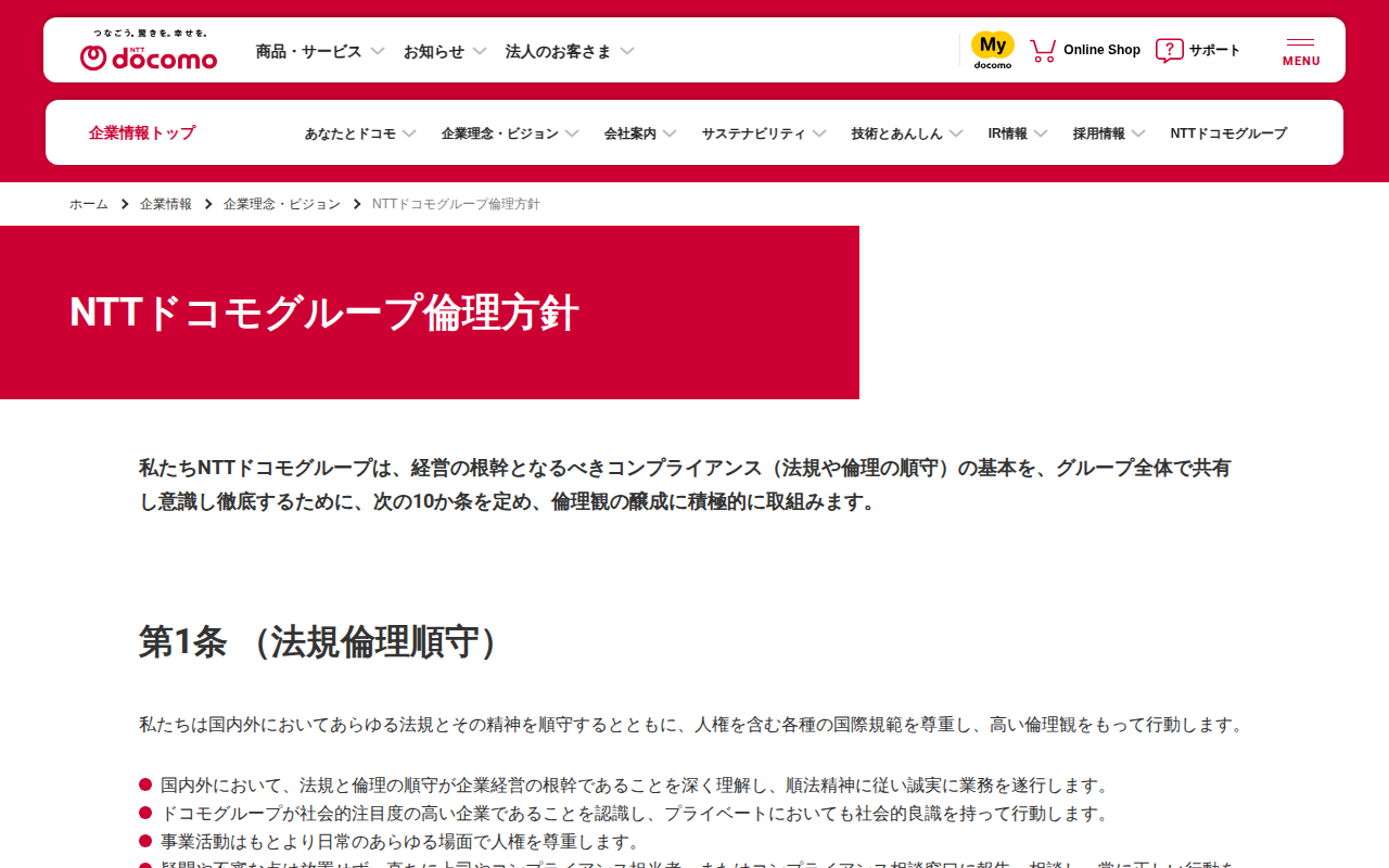 NTTドコモグループ倫理方針 | 企業情報 | NTTドコモ