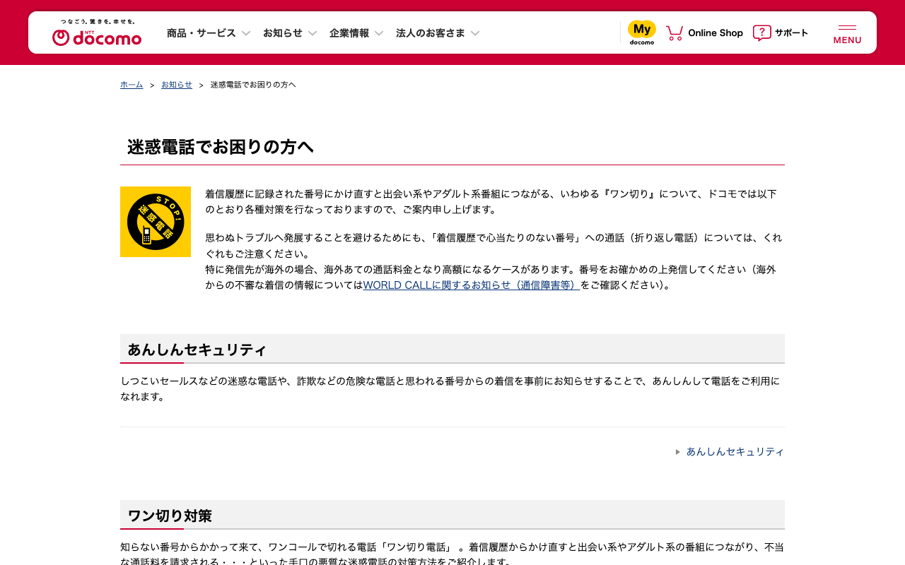 迷惑電話でお困りの方へ | お知らせ | NTTドコモ