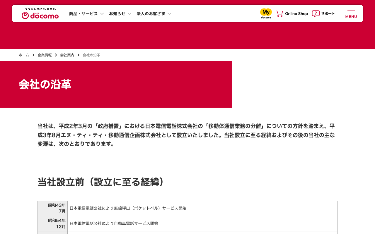 会社の沿革 | 企業情報 | NTTドコモ
