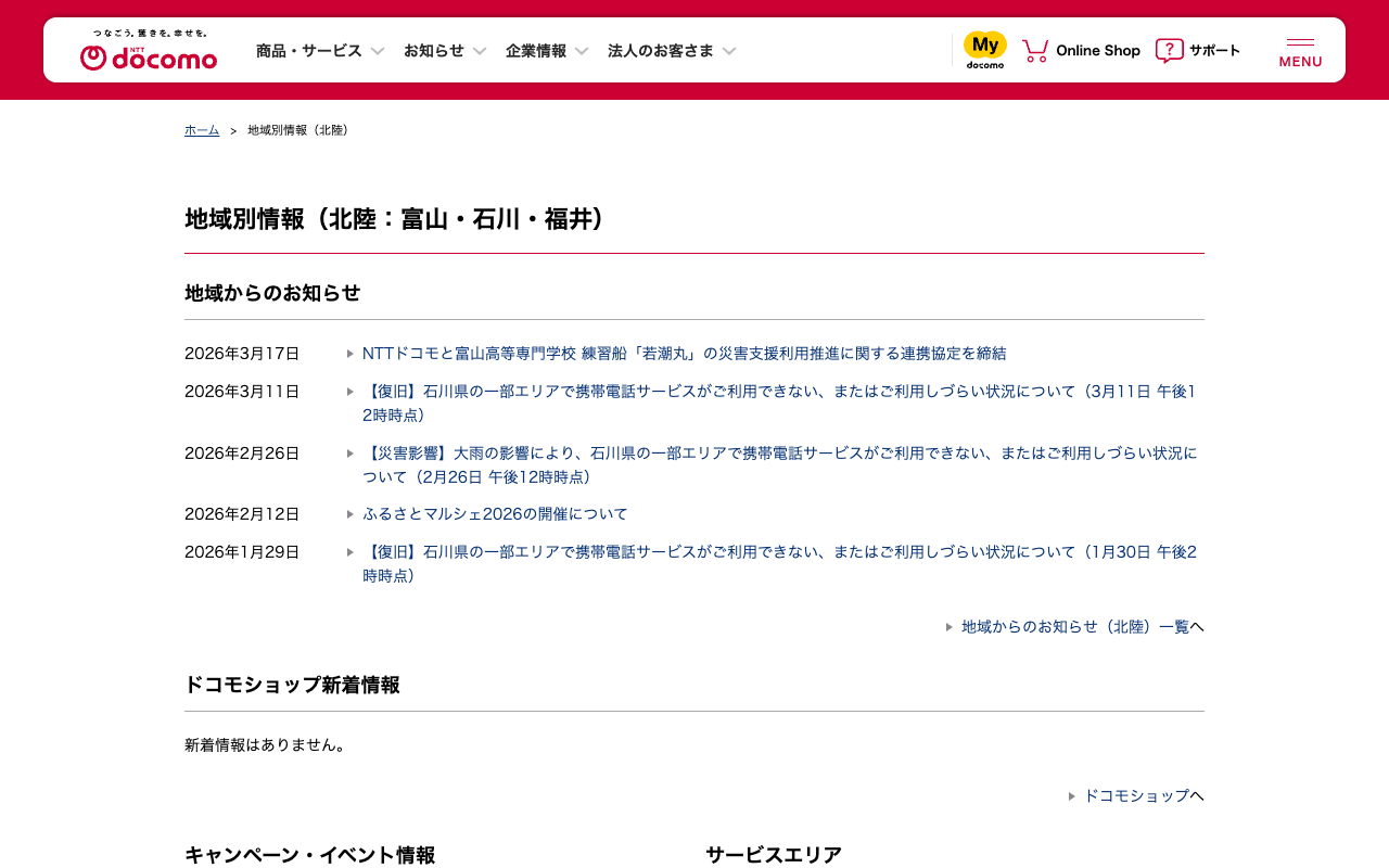 地域別情報(北陸) | NTTドコモ