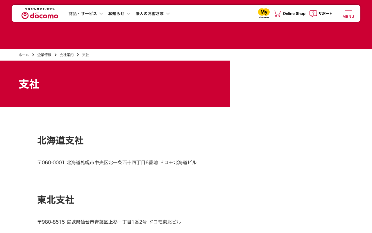 支社 | 企業情報 | NTTドコモ