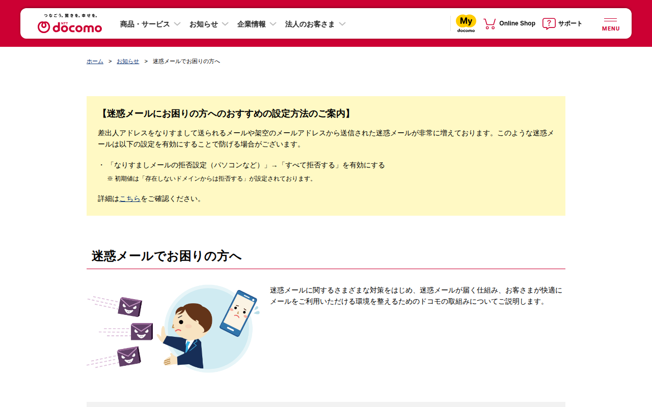 迷惑メールでお困りの方へ | お知らせ | NTTドコモ