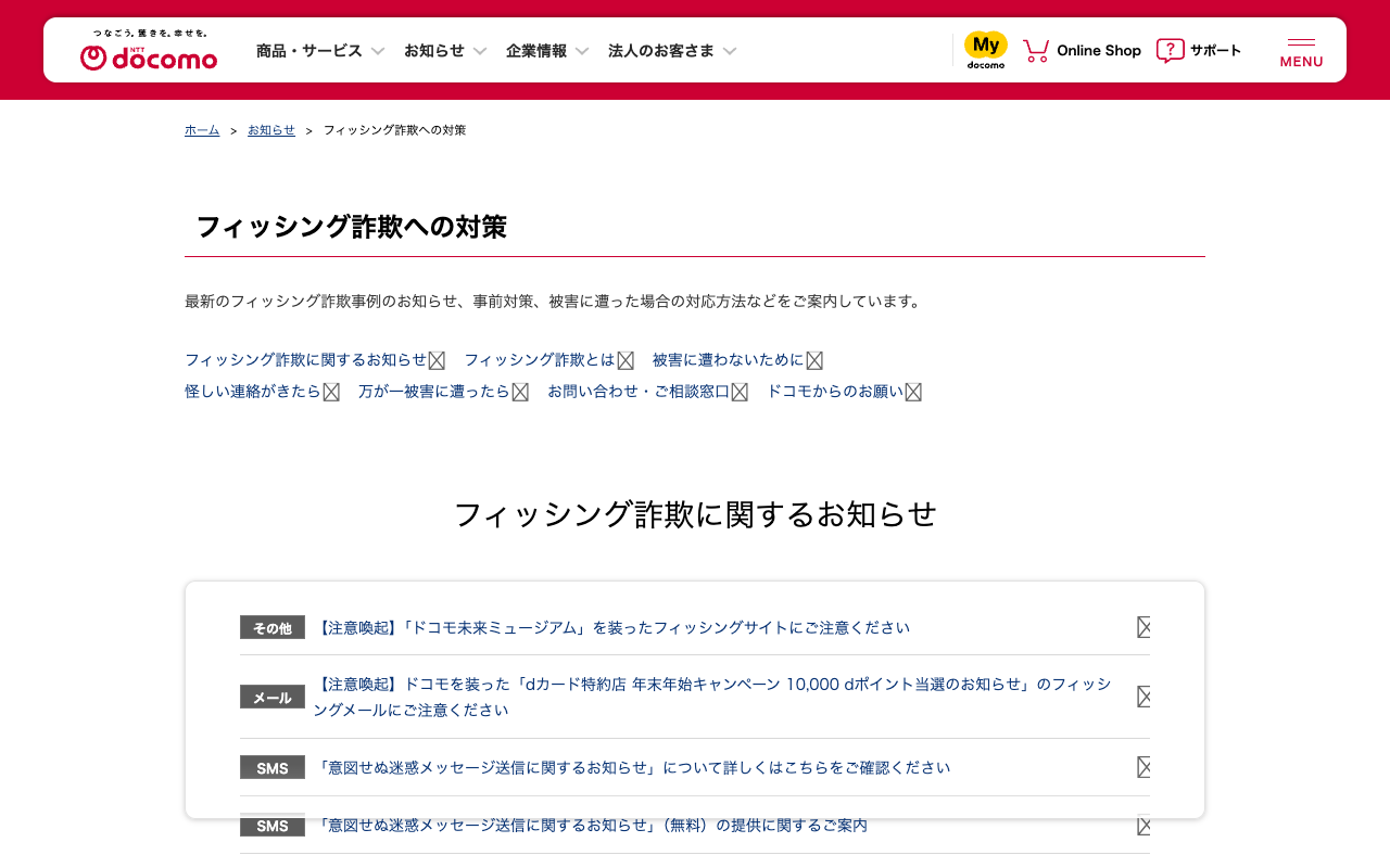 フィッシング詐欺への対策 | お知らせ | NTTドコモ