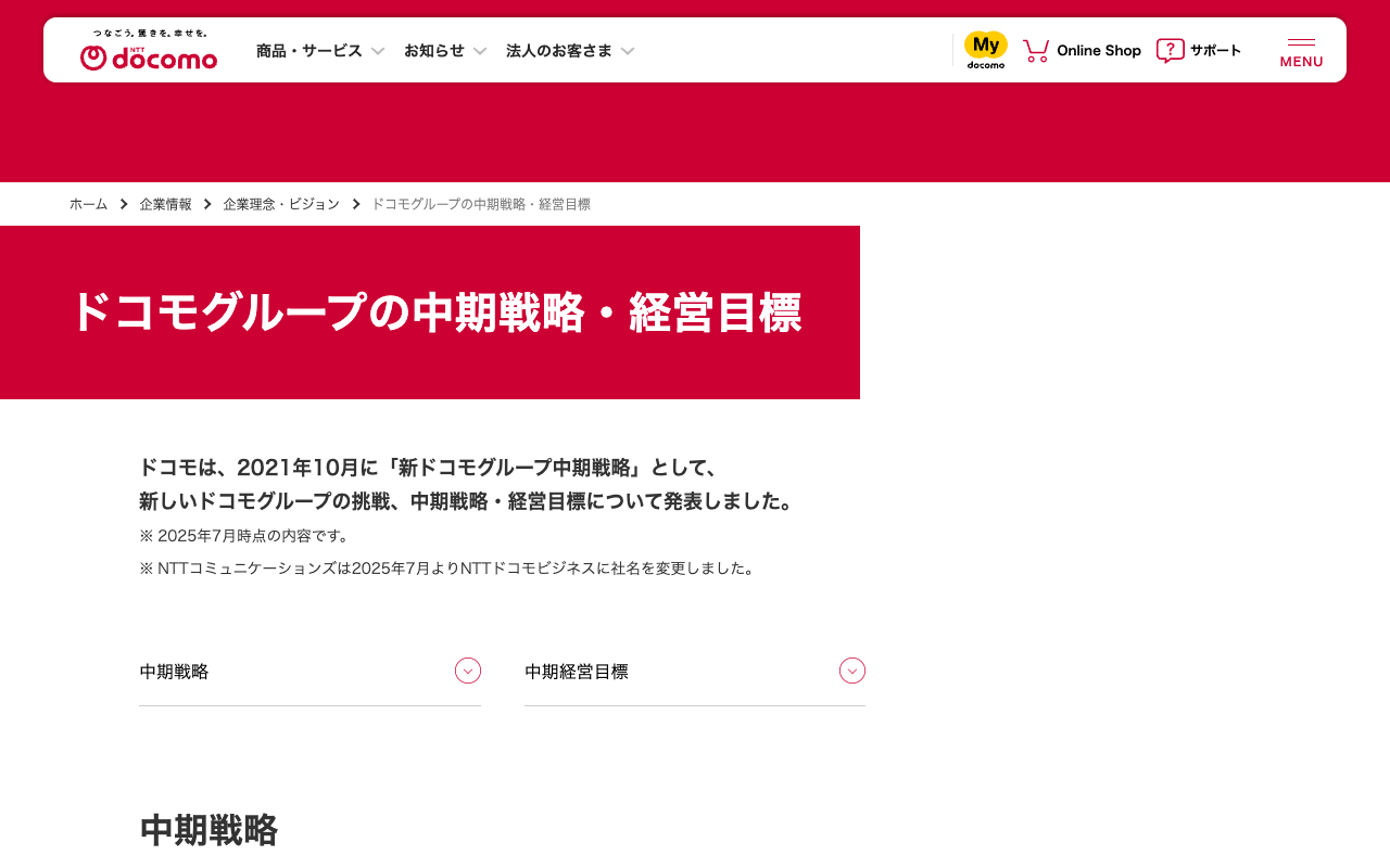 ドコモグループの中期戦略・経営目標 | 企業理念・ビジョン | 企業情報 | NTTドコモ