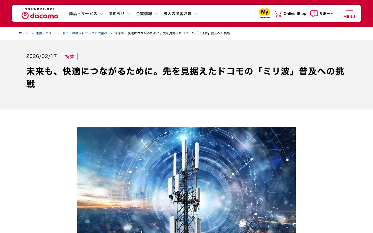 未来も、快適につながるために。先を見据えたドコモの「ミリ波」普及への挑戦 | ドコモのネットワークの取組み | 通信・エリア | NTTドコモ