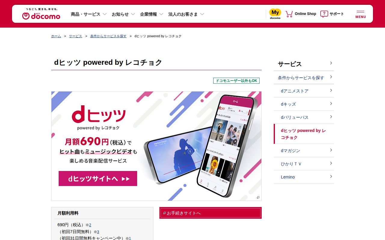 dヒッツ powered by レコチョク | サービス | NTTドコモ