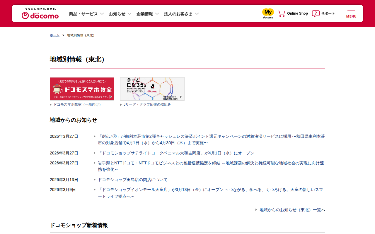 地域別情報(東北) | NTTドコモ