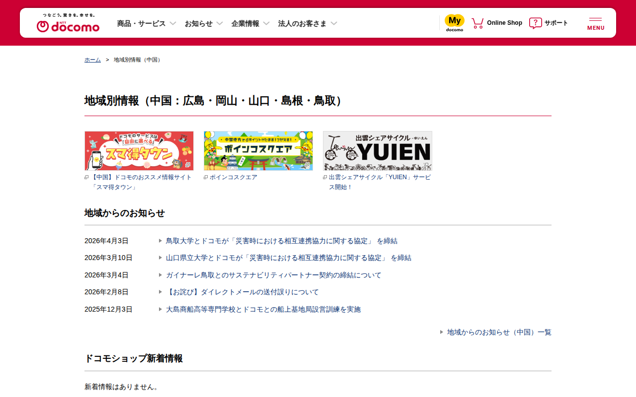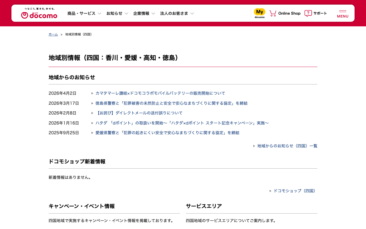 地域別情報(四国) | NTTドコモ
