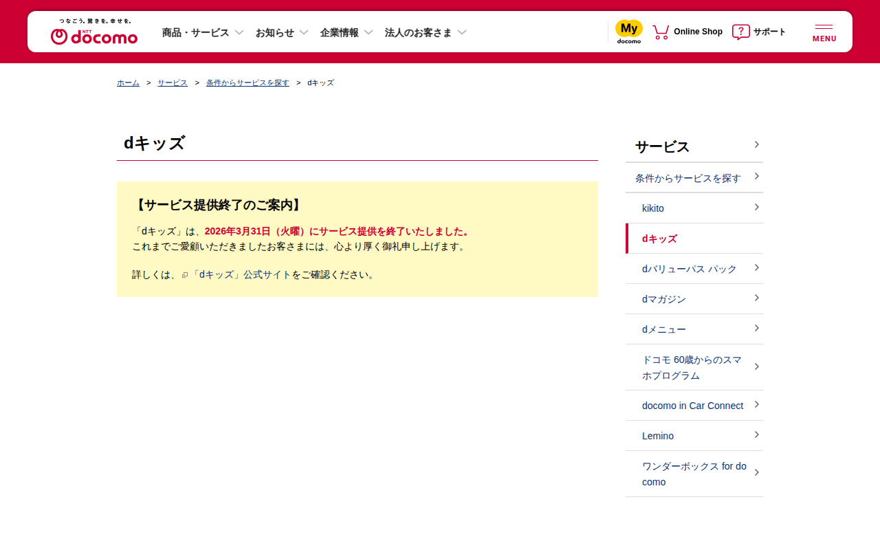 dキッズ | サービス | NTTドコモ