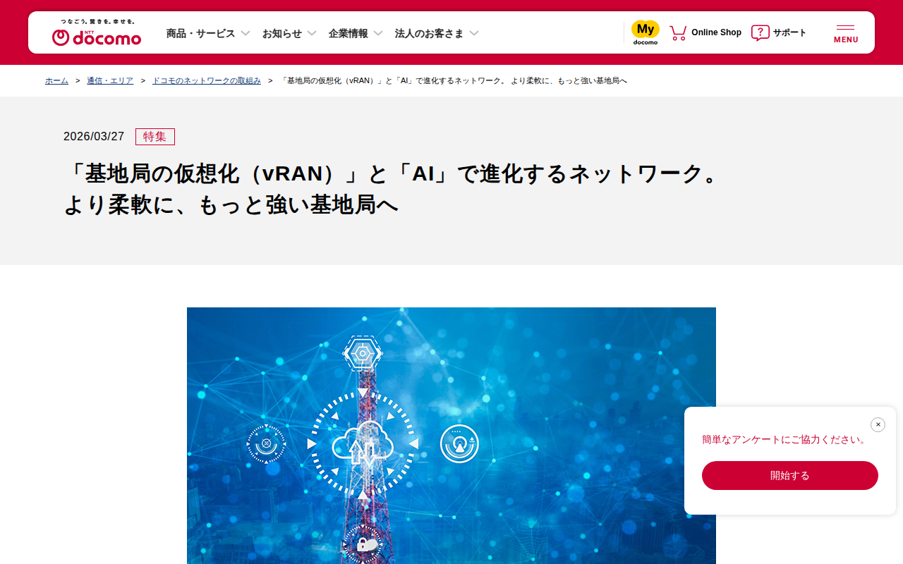 「基地局の仮想化(vRAN)」と「AI」で進化するネットワーク。 より柔軟に、もっと強い基地局へ | ドコモのネットワークの取組み | 通信・エリア | NTTドコモ