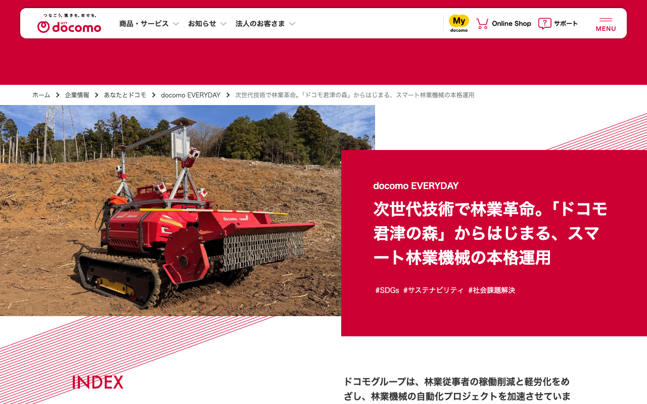次世代技術で林業革命。「ドコモ君津の森」からはじまる、スマート林業機械の本格運用 | docomo EVERYDAY | あなたとドコモ | 企業情報 | NTTドコモ