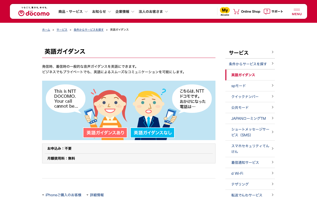 英語ガイダンス | サービス | NTTドコモ