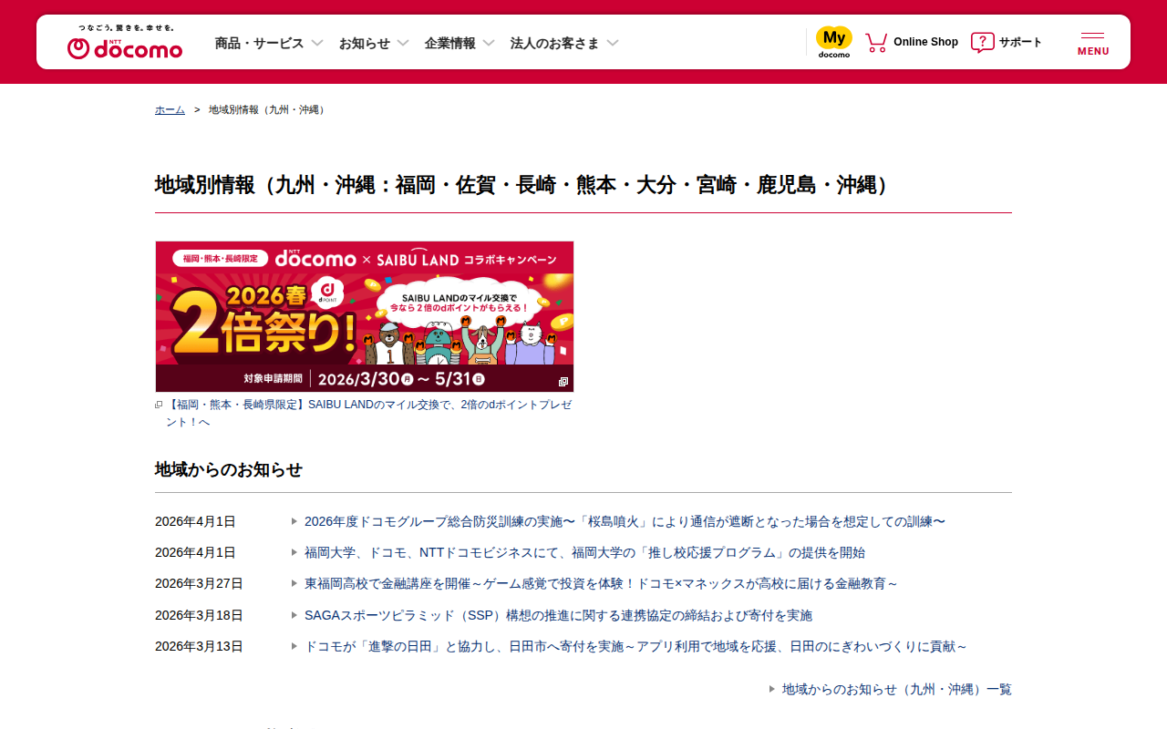 地域別情報(九州・沖縄) | NTTドコモ