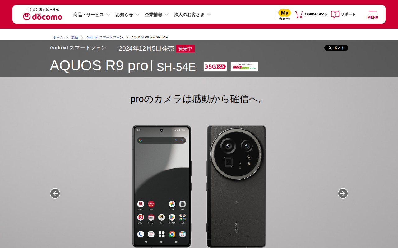 AQUOS R9 pro SH-54E | Android スマートフォン | 製品 | NTTドコモ