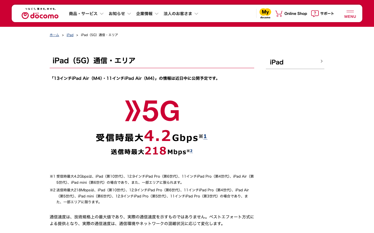 iPad(5G)通信・エリア | iPad | NTTドコモ
