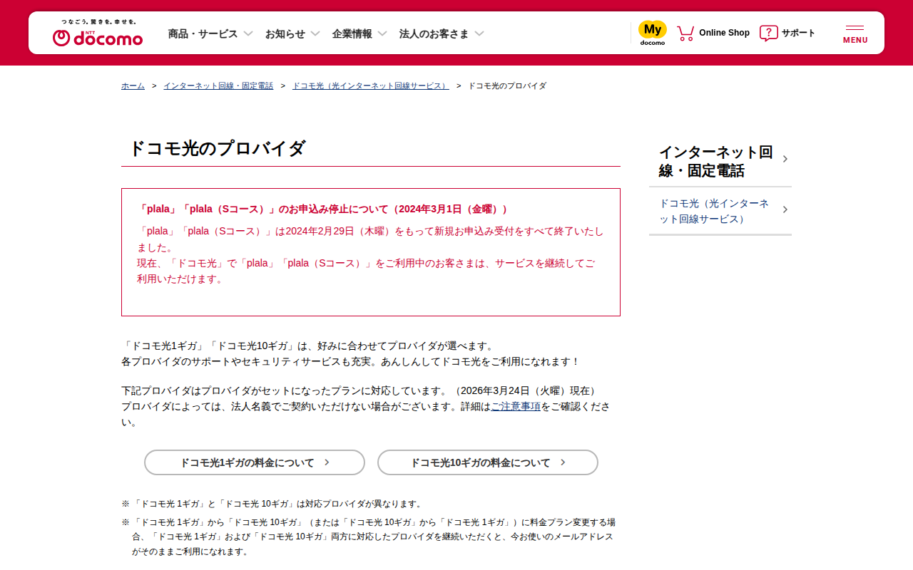 ドコモ光のプロバイダ | ドコモ光 | インターネット回線・固定電話 | NTTドコモ