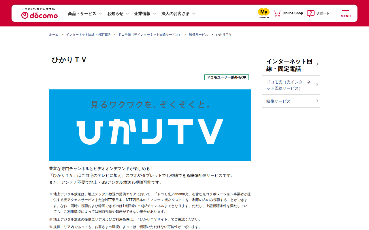 ひかりTV | ドコモ光 | インターネット回線・固定電話 | NTTドコモ