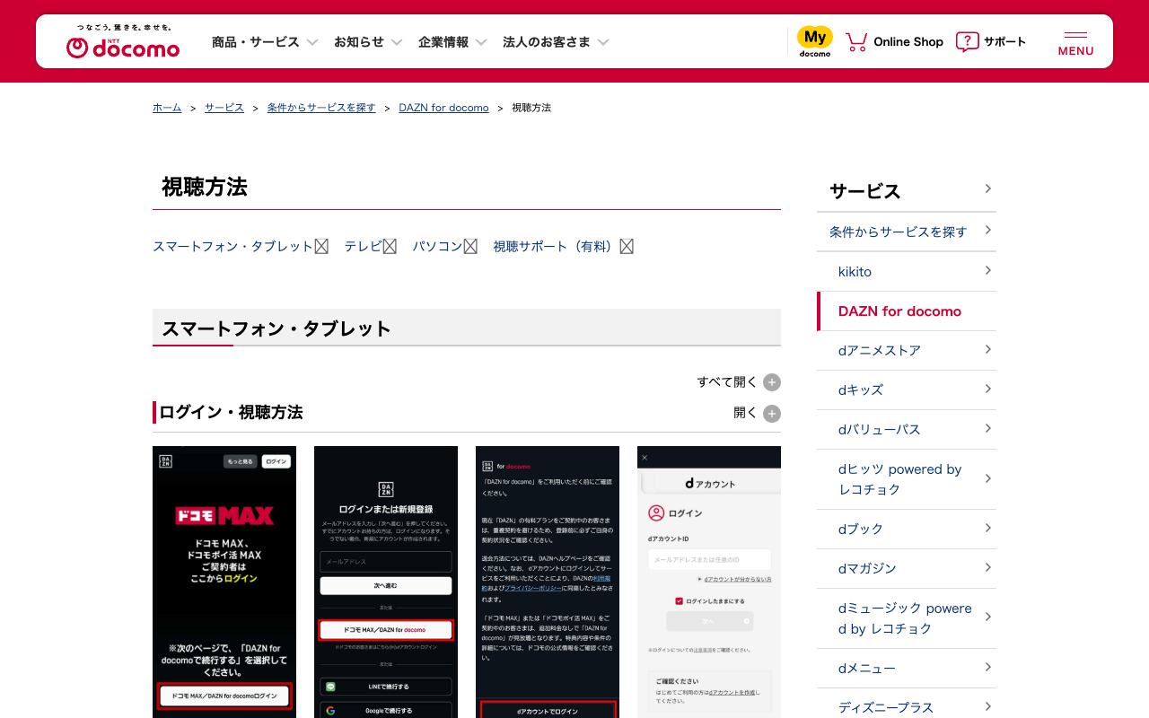 視聴方法 | DAZN for docomo(ダゾーン フォー ドコモ) | サービス | NTTドコモ