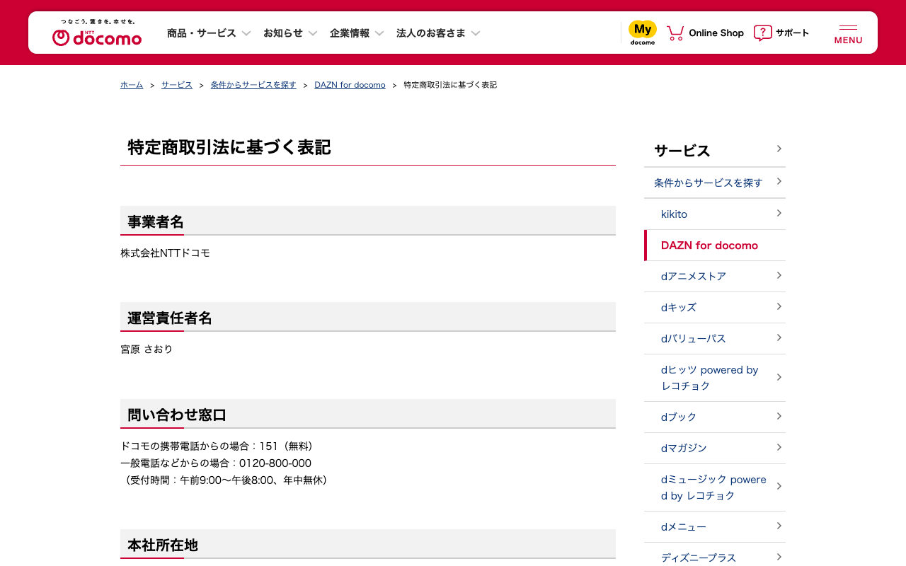 特定商取引法に基づく表記 | DAZN for docomo(ダゾーン フォー ドコモ) | サービス | NTTドコモ