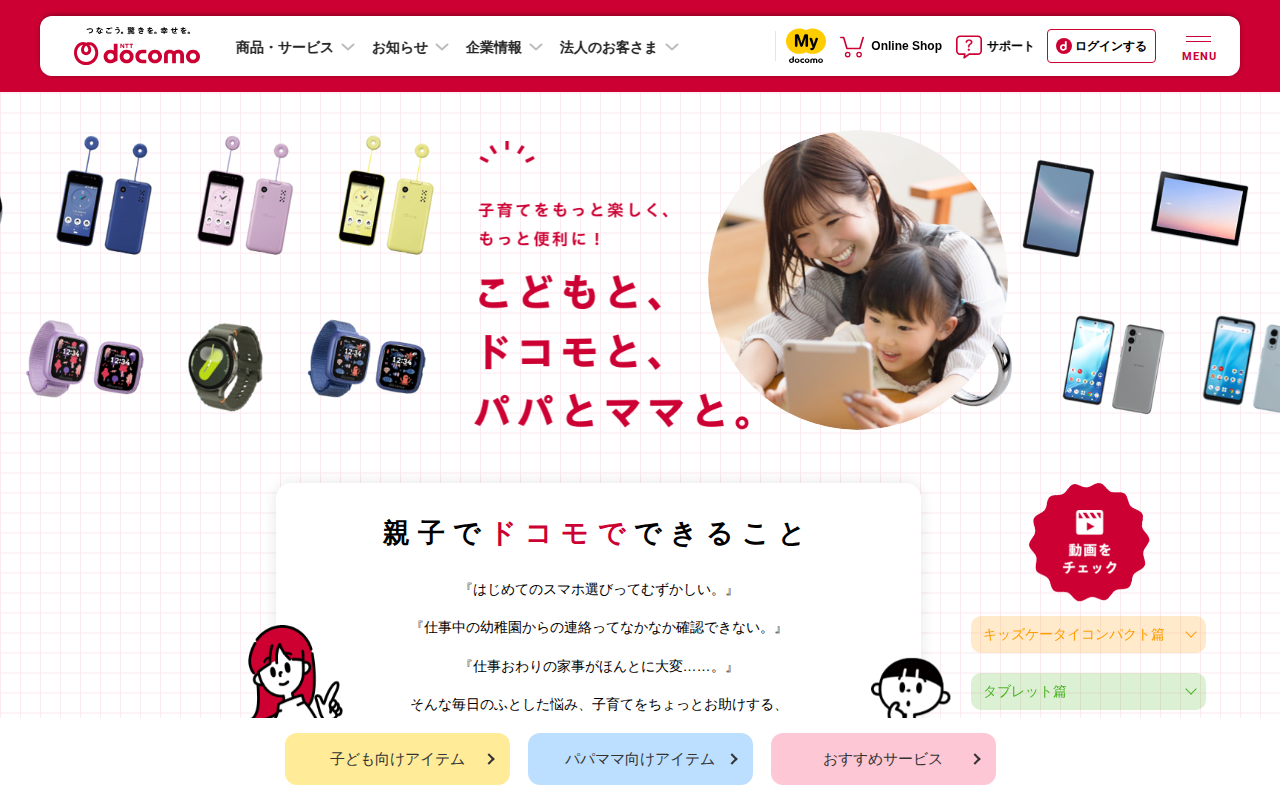 子育てをもっと楽しく、もっと便利に!子どもとドコモとパパとママと。 | 製品 | NTTドコモ