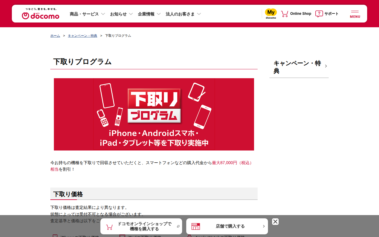 下取りプログラム | キャンペーン・特典 | NTTドコモ