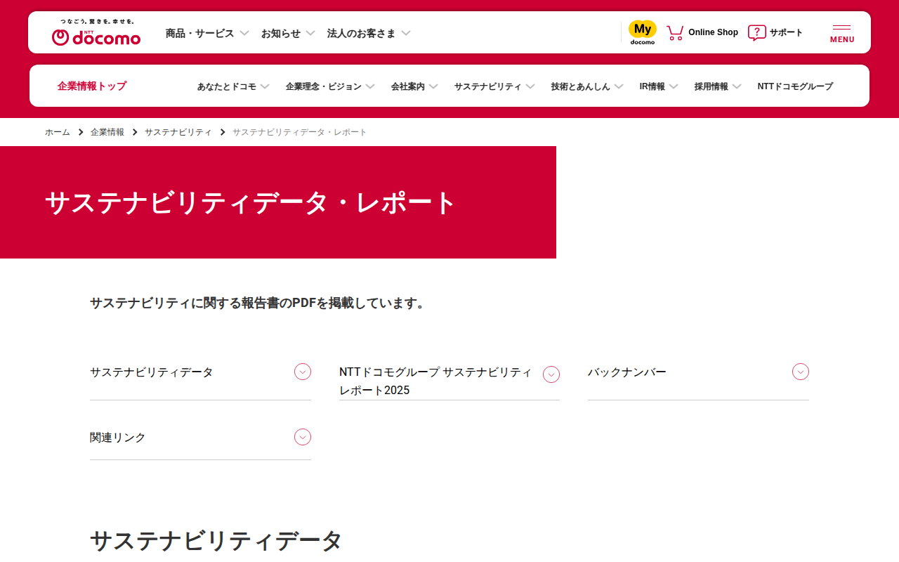 サステナビリティデータ・レポート | 企業情報 | NTTドコモ