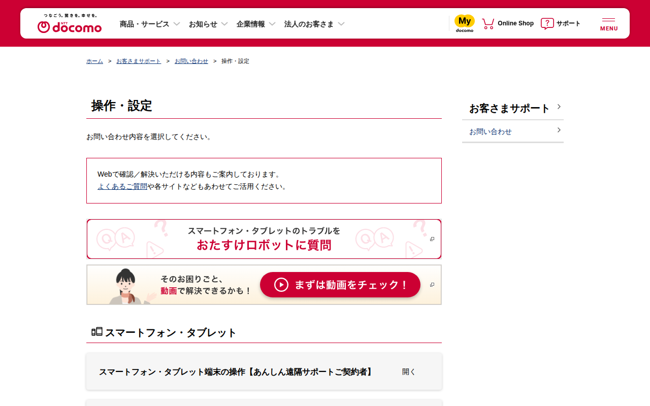 操作・設定 | お問い合わせ | お客さまサポート | NTTドコモ